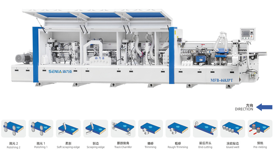 | 電動升降 | 進料速度 | 板材寬度 | 板材厚度 | 板材長度 | 封邊帶寬度 | 封邊帶厚度 | 工作氣壓 | 最小板材尺寸 | 總功率 | 外形尺寸 |